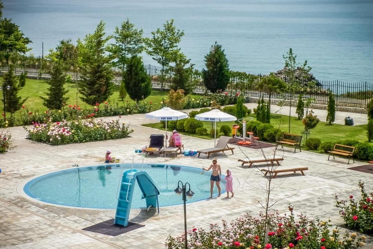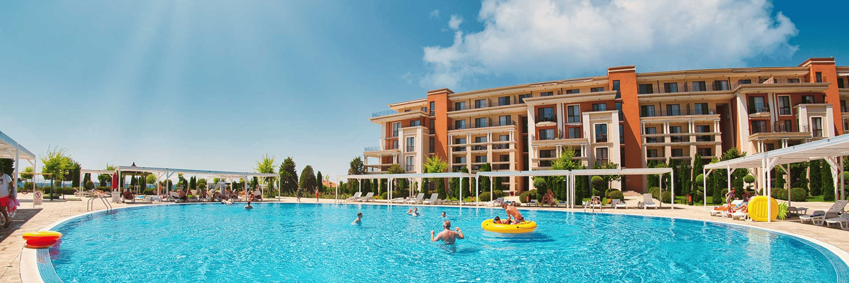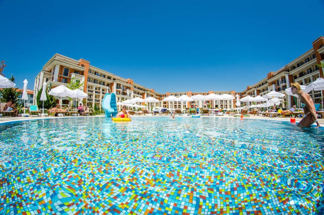 Beliggende mellem Sunny Beach og Sveti Vlas, byder Prestige Fort Beach - Ferie  på en førsteklasses beliggenhed direkte ved stranden og kun en 10 minutters gåtur fra yacht havnen Marina Dinevi. Denne perle er perfekt for par, familier og alle, der ønsker en uforglemmelig ferieoplevelse.