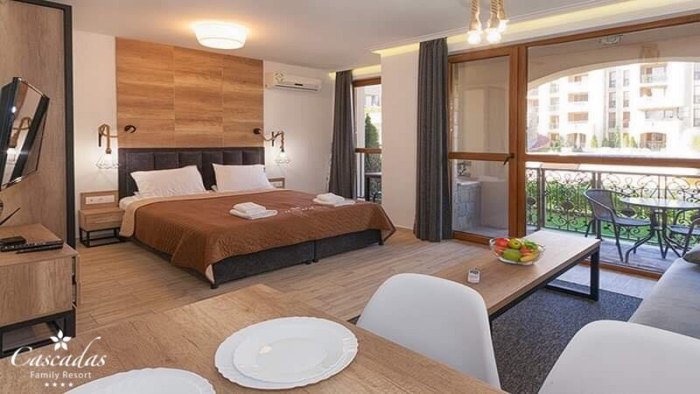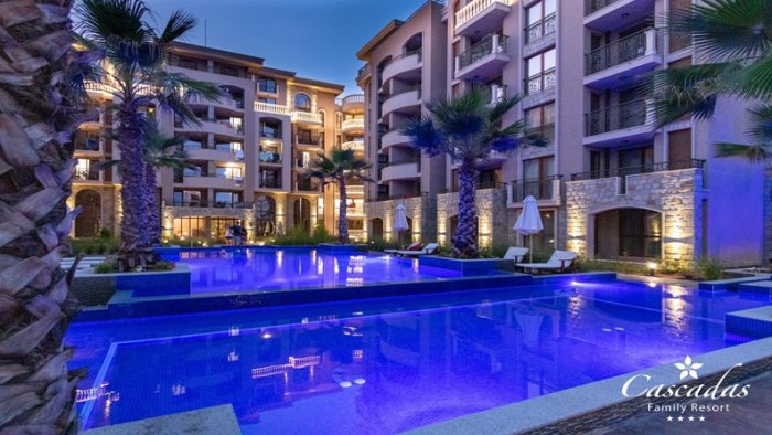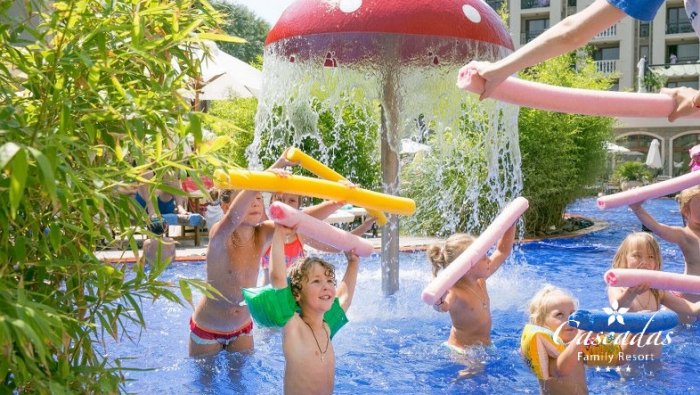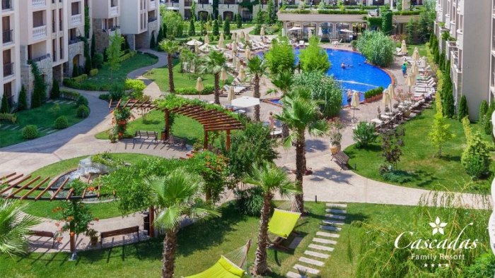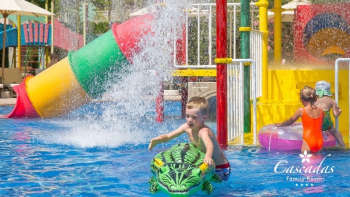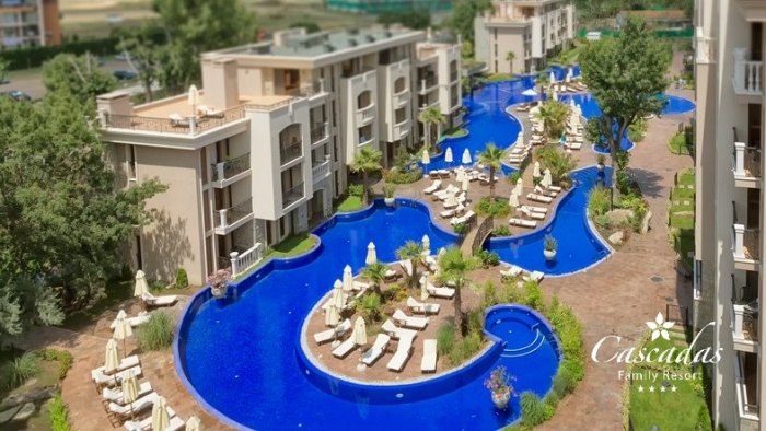 Cascadas Family Resort ligger i Sunny Beach, kun 9 minutters gang fra den nærmeste strand. Gæsterne har adgang til 3 restauranter og 10 udendørs swimmingpools med barer ved siden af dem samt boligenheder med private terrasser med udsigt over poolen eller haven. Gratis WiFi er tilgængelig overalt.