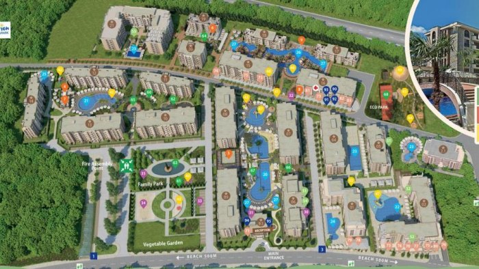 Overnatningsstedet har et SPA- og wellness-center med et boblebad og et dampbad. Der er også et fitnesscenter. For gæsterne er der en økologisk park, 2 minivandlande og daglige børneaktiviteter med animatorer og events. Der er også mødelokaler.